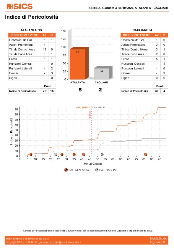 Analizzando più da vicino le cinque reti nerazzurre, notiamo come esse siano state frutto dell’abilità nel gioco offensivo del collettivo e dei singoli atalantini ma anche (come quasi sempre in occasione di reti subite) di errori della retroguardia cagliaritana.