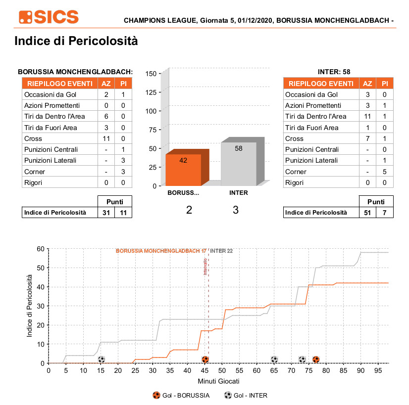 L’Indice di Pericolosità Offensiva (IPO) di Sics, relativo alla gara del Borussia Park, conferma la superiorità nerazzurra.