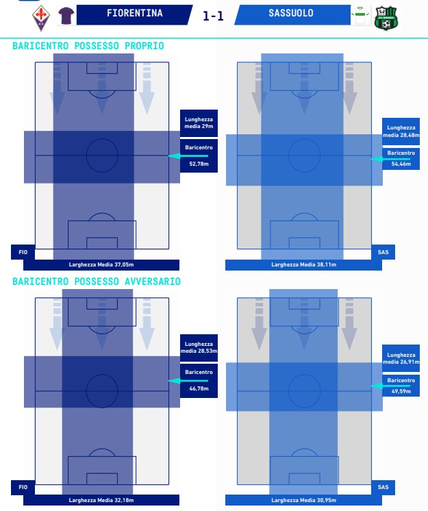 Non sempre questo è avvenuto anche perché la Fiorentina ha preferito rimanere bassa sul possesso avversario (46.78m), senza andare a ricercare quella pressione alta (14.54 il PPDA) che il Sassuolo appunto sperava di generare col proprio possesso.