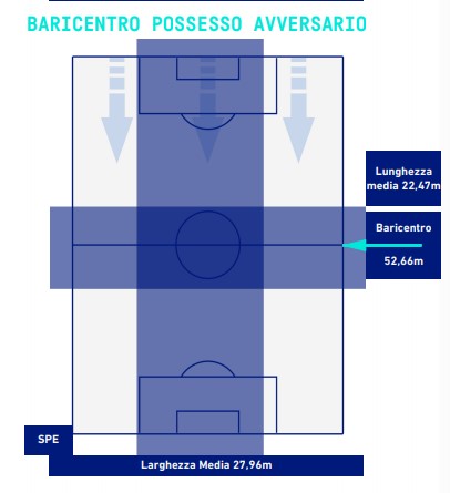Per raggiungere l’obiettivo lo Spezia non ha avuto paura a difendere con la linea arretrata alta e un baricentro molto avanzato. Non a caso, proprio il baricentro medio spezzino sul possesso rossonero è risultato essere di ben 52.66m.