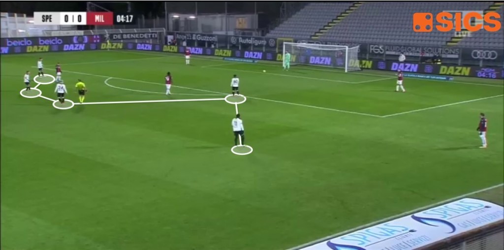 In un periodo storico nel quale le squadre che adottano il pressing come arma difensiva lo fanno soprattutto andando a creare situazioni di 1c1, una variabile è stata quella mostrata dallo Spezia nella sfida che ha visto gli aquilotti opposti al Milan di Pioli.