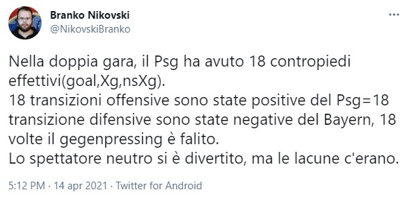 La sfida fra Psg e Bayern, valevole per il ritorno dei quarti di finale di Champions League, è stata una antologia del calcio moderno fra duelli 1c1, 2c2, costruzioni contro prime pressioni, ricerca della superiorità (numerica, individuale o posizionale) e prestazioni dei singoli.