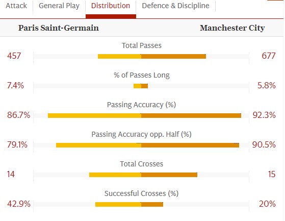 In effetti, nel corso dei primi quarantacinque minuti di gioco i Citizens sono mancati in fase offensiva e anche difensiva quando sono stati proprio gli inglesi a soffrire le fasi di possesso dei parigini.