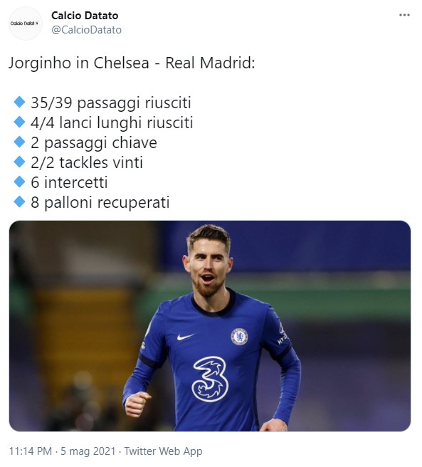 Alla fine quindi il Real Madrid non è stato in grado di contrapporsi alla gestione palla del Chelsea. Una gestione come detto non quantitativa ma qualitativa e che solo l’imperizia in avanti di Kai Havertz e Werner ha impedito di tradurre in uno scarto maggiore nel punteggio finale.