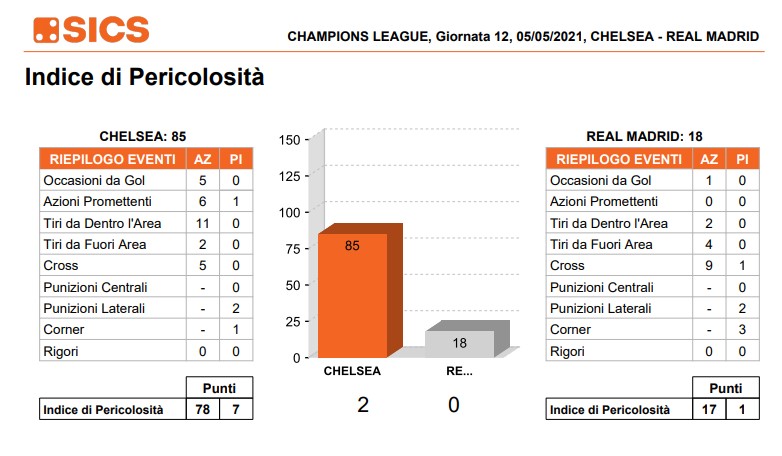 Dal punto di vista tattico Tuchel ha lasciato al Real il pallino del gioco (68% di possesso palla) orchestrando una partita di pressione alta modulata con situazioni di difesa posizionale e ripartenza.