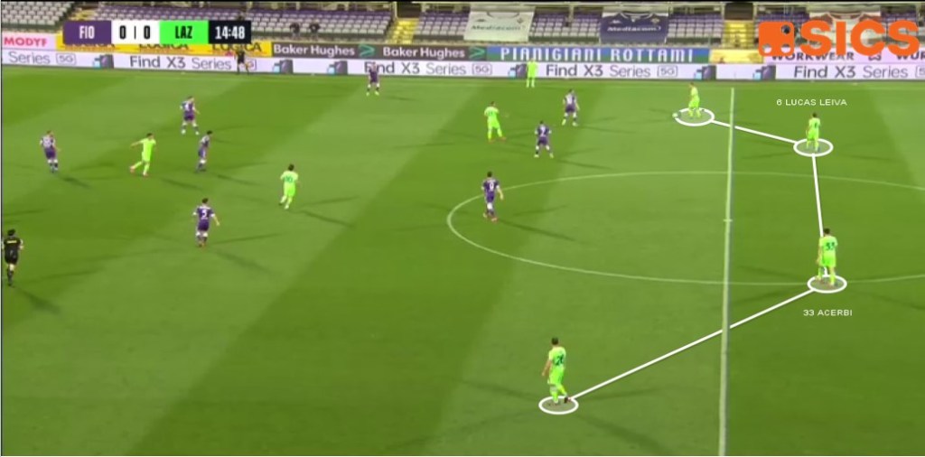 Accanto a questa costruzione diretta c’era, come accennato poc’anzi, una costruzione più elaborata, che spesso vedeva Leiva abbassarsi fra accanto ad Acerbi con i braccetti che prendevano ampiezza.