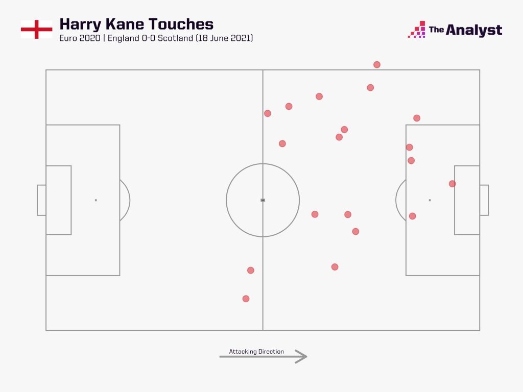 In questo modo la manovra inglese tendeva a veicolarsi verso attacchi diretti alla profondità (in particolare con Phil Foden) cercando di sfruttare l’alta linea difensiva scozzese.