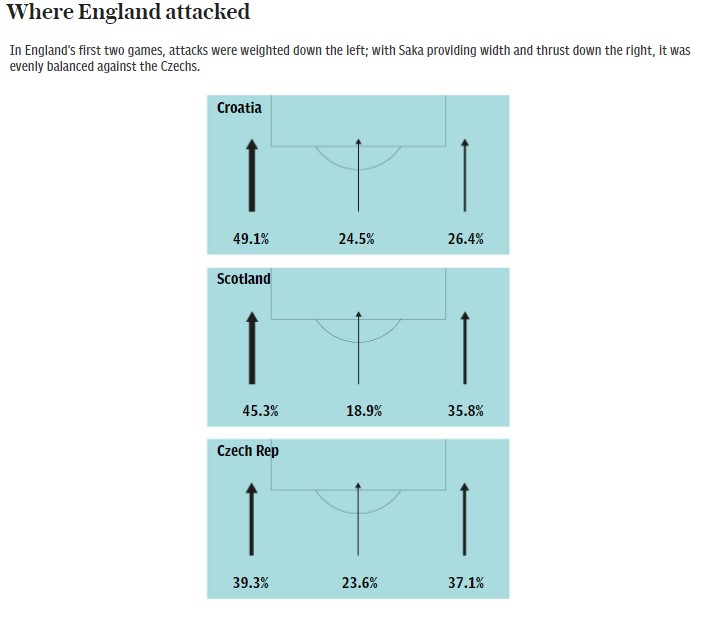 La presenza in campo del calciatore dell’Arsenal ha permesso a Southgate di presentare una fase offensiva più equilibrata, non sbilanciata sul lato sinistro come nelle prime due uscite.