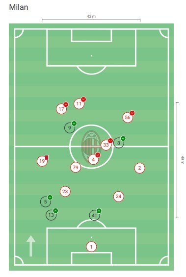 Ancora una volta l’occupazione di determinati spazi per favorire il possesso rossonero è stata più importante dei giocatori che andavano ad occuparli.