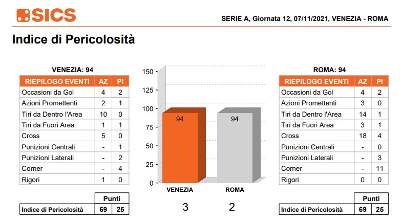 La squadra ha una buona produzione in zona gol: a fronte di un dato di 22.32 xG prodotti ha infatti realizzato 21 reti. I problemi maggiori sono invece in difesa, dove la Roma ha concesso finora 15 reti (come Juventus e Atalanta) fuori da un dato di 16.41 xGA (peggio di Fiorentina e Torino fra le altre). I giallorossi concedono 1.9 grandi occasioni a partita. L’Indice di Rischio Difensivo è di 47.2: dieci squadre hanno fatto meglio dei giallorossi.