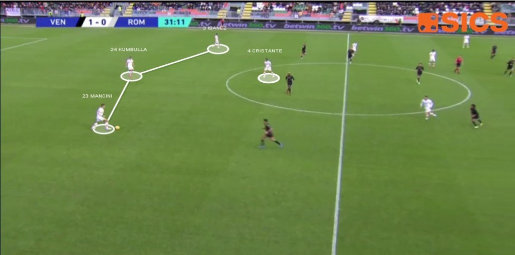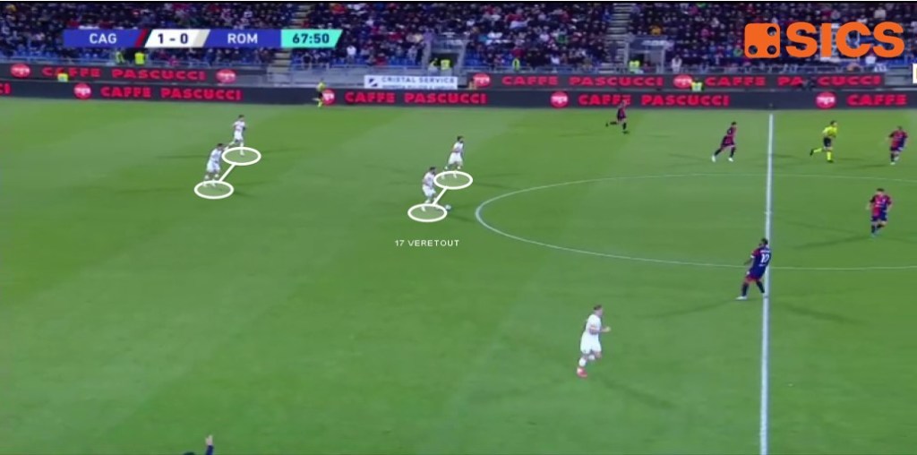 In questo momento il 22enne massese viene utilizzato come esterno destro di un centrocampo a quattro molto stretto in fase difensiva. I dati indicano un peggioramento delle prestazioni, sia in termini di gol e assist (zero) che di xA p/90 (-0.11) e di tiri in porta p/90 (-0.82). Veretout è chiamato a compiti di equilibrio che ne limitano le sortite offensive. Mkhitaryan, appare anche lui in calo.