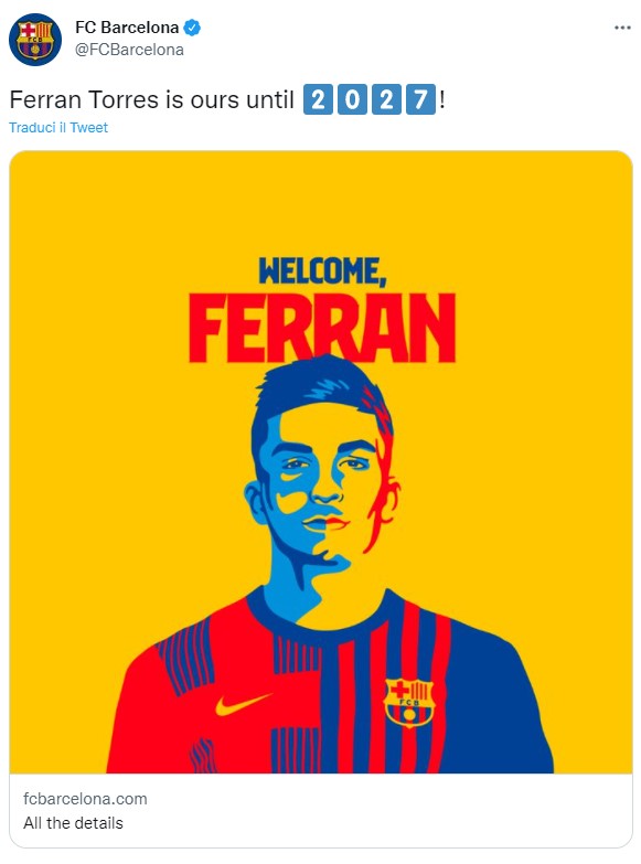 Ferrán Torres è il primo colpo di mercato dell’era Xavi. Per 55 milioni di euro (più bonus) il Barcellona si assicura così dal City un giocatore di indubbio talento, che non ha avuto fortuna nella sua avventura inglese ma che, sulla carta, potrà contribuire al tentativo di rinascita messo in atto da Xavi.