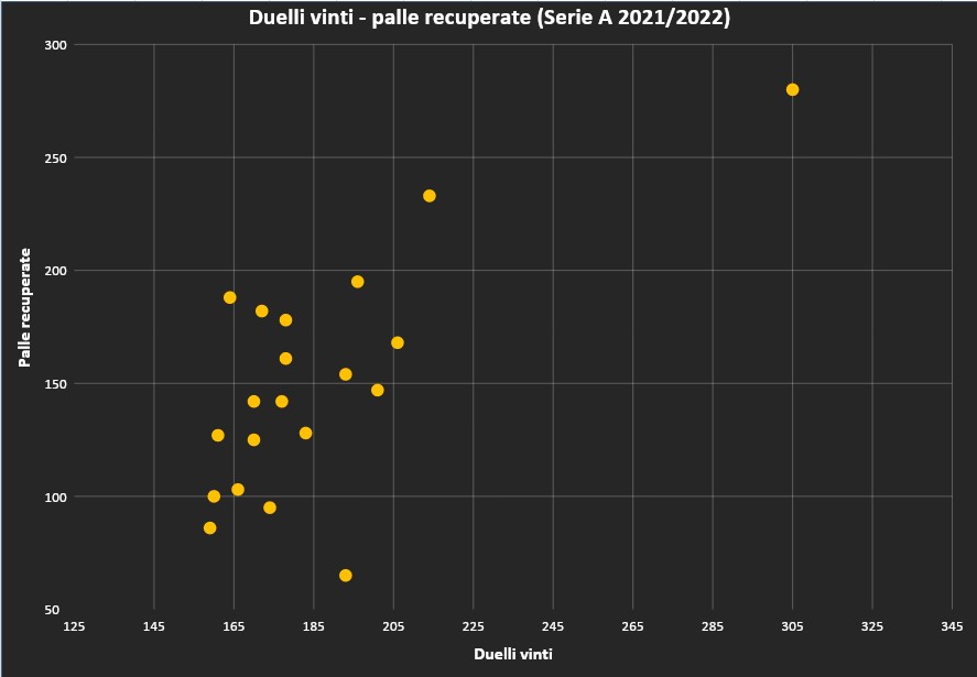 Se a questi dati aggiungiamo quello relativo ai tackle vinti (18) che colloca Bremer appena al 51° posto in questa graduatoria (dati soccerment), abbiamo l’idea di un difensore che cerca più l’anticipo o risolve le situazioni difensive a proprio vantaggio tramite il posizionamento più che ricorrendo appunto al tackle.