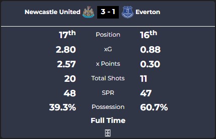 L’analisi quantitativa della performance del 24enne ex Nizza rivela come Saint-Maximin abbia registrato due tiri nello specchio della porta difesa da Pickford, accumulando un totale di 0.45 in termini di expected goals (xG). Si tratta del secondo dato più alto prodotto da un giocatore del Newcastle dopo gli 0.87 registrati da Ryan Fraser.