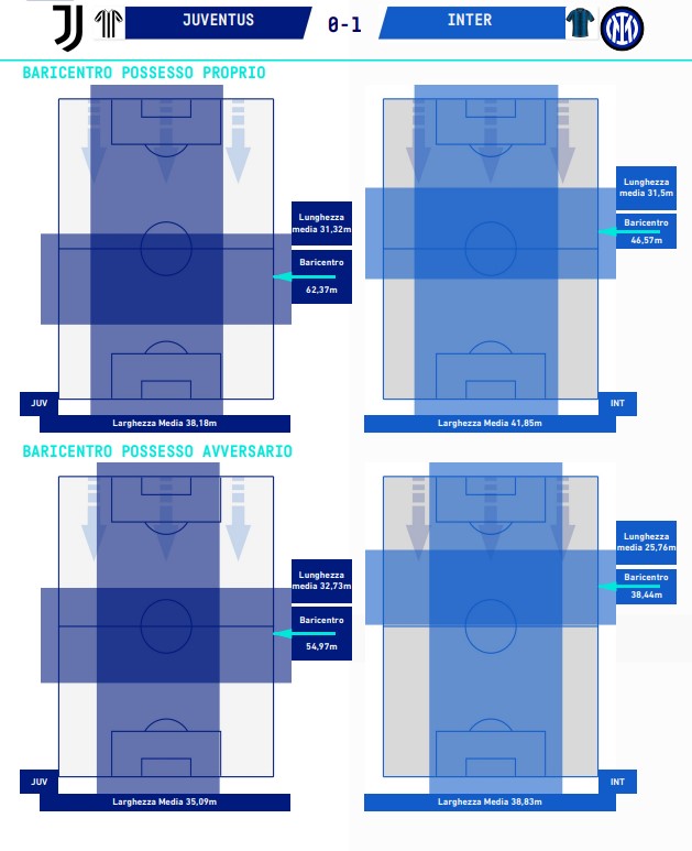 Di tutto questo beneficiava la fase difensiva juventina, che ha limitato l’Inter ad un indice di pericolosità offensiva di appena 29 e ad un dato di expected goals (xG) di soltanto 1.08.
