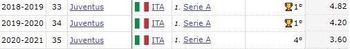 Le sue pressioni p/90 nella trequarti offensiva sono passati da 4.82 nel primo anno di Juve a 4.20 e 3.60 delle altre due.