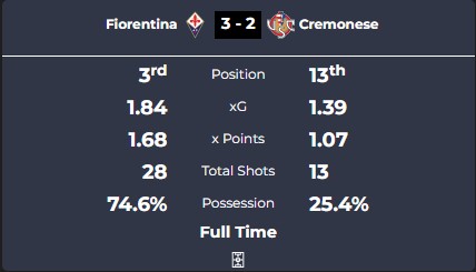 Così facendo, pur dovendo affrontare una Fiorentina che col passare dei minuti buttava sempre più palloni (24 cross totali) e riempiva con sempre più uomini l’area, la Cremonese ha contestato il risultato fino all’ultimo.