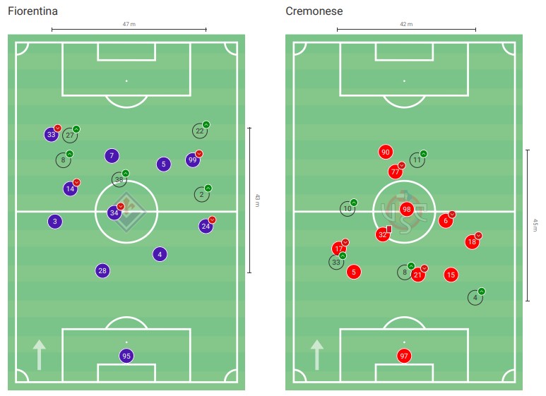 La sfida del Franchi fra Fiorentina e Cremonese ha visto infatti contrapporsi due idee di gioco diverse: i viola versione Zeman 2.0 di Italiano (baricentro e linea difensiva alta, movimenti per catene, mezzali in rifinitura e in zona di finalizzazione) contro la Cremonese gasperiniana (con alcune differenze) di Alvini.