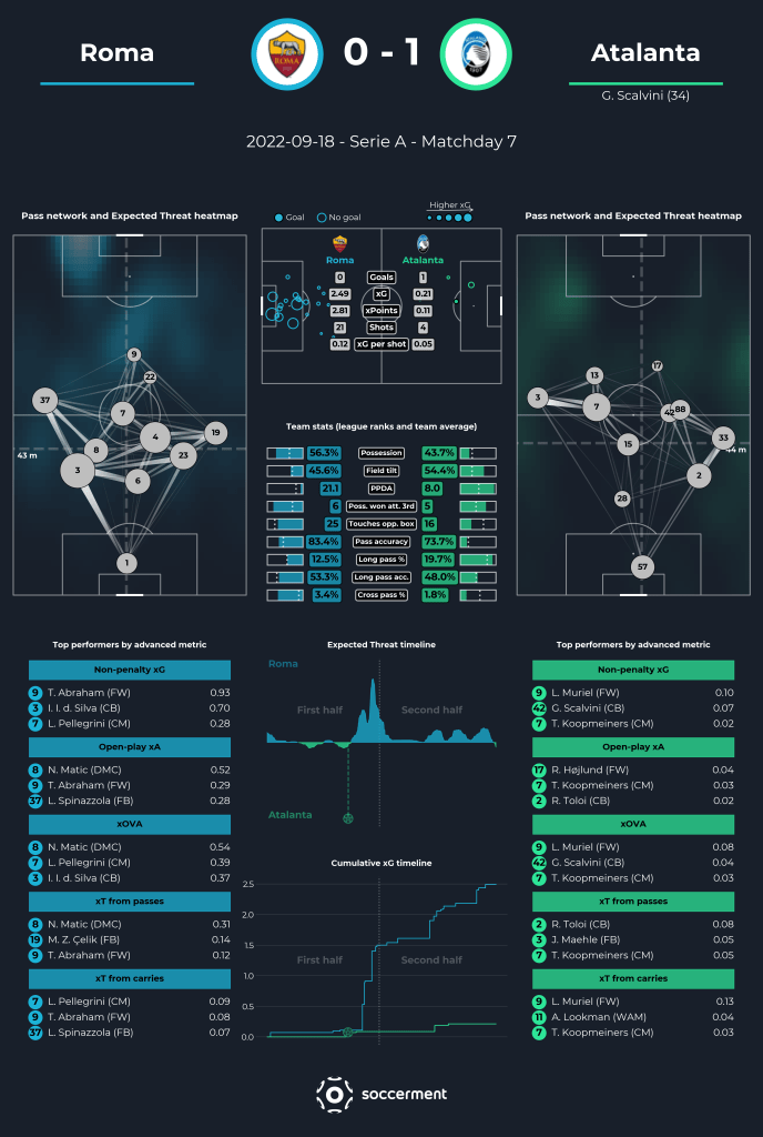 Il piano gara è funzionato parzialmente: per portare a casa i tre punti infatti l’Atalanta ha avuto bisogno dell’imprecisione sotto porta di una Roma che ha creato ben 2.49 expected goals, senza tuttavia riuscire a segnare.