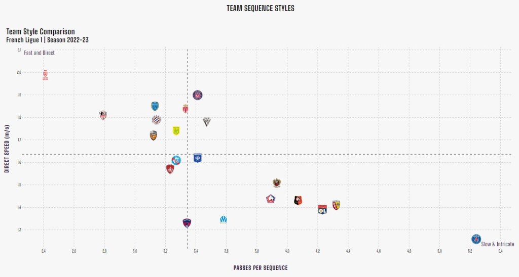 Il Lorient alterna rapide transizioni ad attacchi più ragionati, spesso giocando all’interno del campo prima di aprire in fascia, pur restando come detto una squadra diretta, come indicano i dati relativi al tempo medio per sequenza offensiva (8.87sec.) e quello relativo al numero di passaggi per azione d’attacco (appena 3.09).