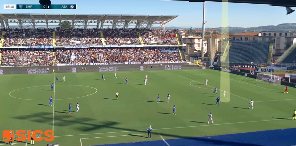 E infatti, nella nuova Dea di Gasperini (una versione più prudente di quella alla quale eravamo abituati) abbiamo visto Koopmeiners agire da mediano, ma abbassarsi spesso sulla linea dei difensori in fase di costruzione così come alzarsi in appoggio dei riferimenti più avanzati della sua squadra (l’anno passato l’ex capitano dell’AZ aveva fatto anche il falso nueve).