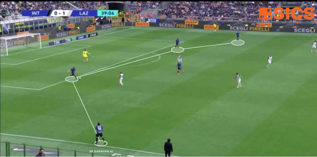 Dal punto di vista tecnico c’è stato un abbassamento del livello qualitativo, particolarmente in situazione di uno contro uno offensivo. I vari Federico Dimarco e Denzel Dumfries infatti hanno mostrato i propri limiti nel creare superiorità numerica in fascia (l’olandese ha una percentuale di successo nel dribbling del 45.9%, l’ex Verona addirittura di appena il 27.8%), in particolar modo contro difese basse e chiuse.