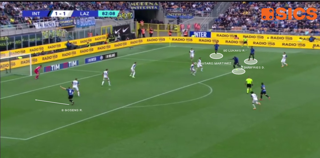 Dopo l’errore in costruzione di Francesco Acerbi (su una delle rare pressioni alte laziali), che ha permesso alla squadra di Maurizio Sarri di trovare il gol del vantaggio con Felipe Anderson, l’Inter ha infatti preso a macinare gioco. Soprattutto nel secondo tempo, quando la squadra di Inzaghi è riuscita a tradurre il dominio territoriale (field tilt del 69.6%) in chiare occasioni da gol, dando un’impennata al dato degli expected goals prodotti (alla fine saranno 2.91).