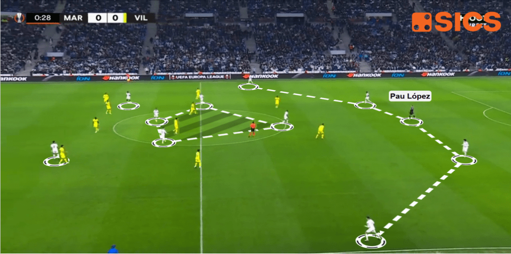 A questa soluzione Gasset ne alternava altre, che andavano dal 3-5-2 più fisso al 4-3-1-2 al 4-3-3. Sempre all’interno di un contesto estremamente fluido, pronto ad adattarsi all’avversario di turno e alle esigenze della sua squadra, per lungo tempo vistasi privare di elementi importanti come Gigot, Jonathan Clauss o Valentin Rongier a causa di infortuni.