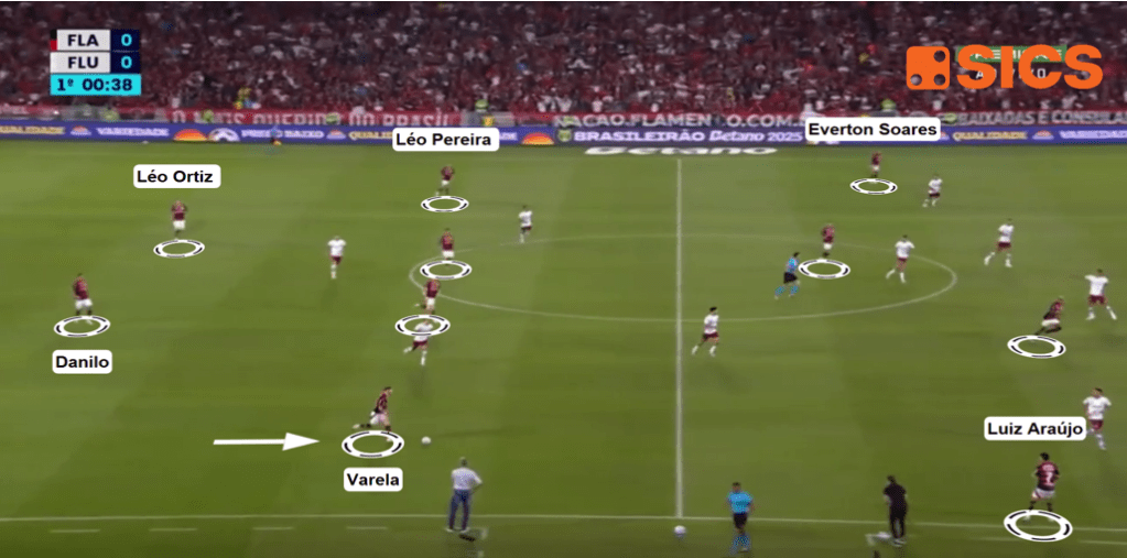 Dal canto suo, non è che il Mengão abbia prodotto chissà cosa. Certo, dicevamo il possesso, organizzato dai due difensori Léo Ortiz e Danilo e dai due interni di centrocampo Jorginho e Allan. Un possesso però sterile, non favorito nemmeno dalla scelta di spostare sulla fascia sinistra il solitamente centrale Léo Pereira (per ovviare alle contemporanee assenze di Ayrton Lucas e Alex Sandro) e di proporre a destra l’uruguaiano Guillermo Varela (al posto di Wesley, alle prese con le trattative che dovrebbero portare ad una sua cessione alla Roma). Davanti poi la scelta cadeva su Wallace Yan come centravanti, dopo che il prescelto Gonzalo Plata si infortunava nel riscaldamento.