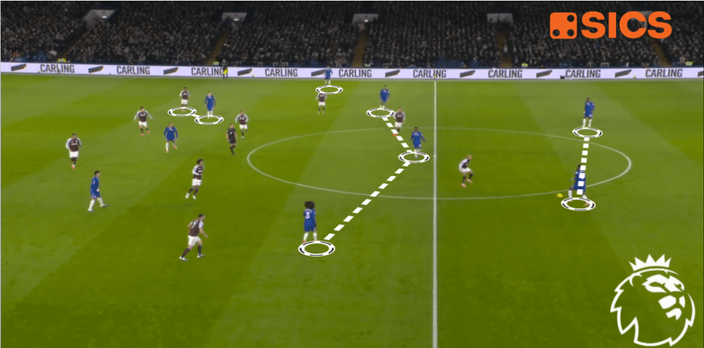 Nella gara contro il Bournemouth il Chelsea nel primo tempo ha patito i veloci contropiedi della squadra di Iraola mentre, nella ripresa, i Blues hanno avuto maggiore controllo della gara, ma hanno palesato non pochi problemi nel tentativo di forzare il blocco basso avversario.